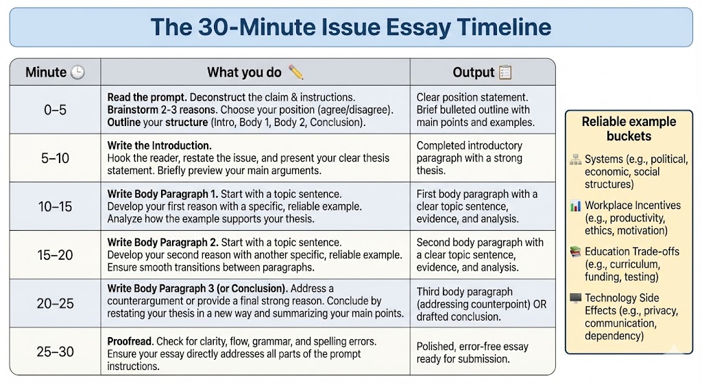 For Issue essays, your goal is clear argument structure and clean paragraph logic.